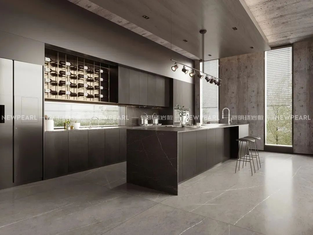 ◤巖板打造的廚房系統(tǒng),瓷磚和石材無法全部做到