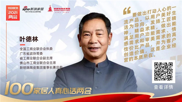 3月4日、5日,全國人民政治協商會議和全國人民代表大會陸續在北京開幕,中國進入了“兩會”時間。作為建陶行業轉型升級的標志性企業,新明珠陶瓷集團一直在以自己的力量為我國經濟社會發展做貢獻。“兩會”來臨,新明珠陶瓷集團董事長兼總裁葉德林說了一些自己真心話。
