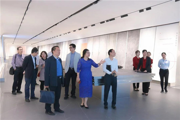 陳先輝副總裁首先帶曾令榮院長(zhǎng)一行參觀了全新落成的總部展廳。在展廳最具代表性的設(shè)計(jì)之一——瓷磚山處,陳總向來賓們介紹到,這些高大雄偉瓷磚山其實(shí)都是由瓷磚的邊角料堆疊而成,這不僅傳遞了新明珠的可持續(xù)環(huán)保理念,也蘊(yùn)含了新明珠人通過28年的努力積累,不斷沉淀,從而達(dá)到現(xiàn)有高度的寓意。