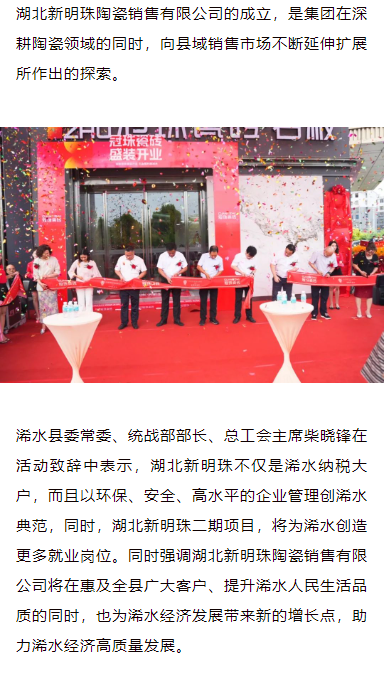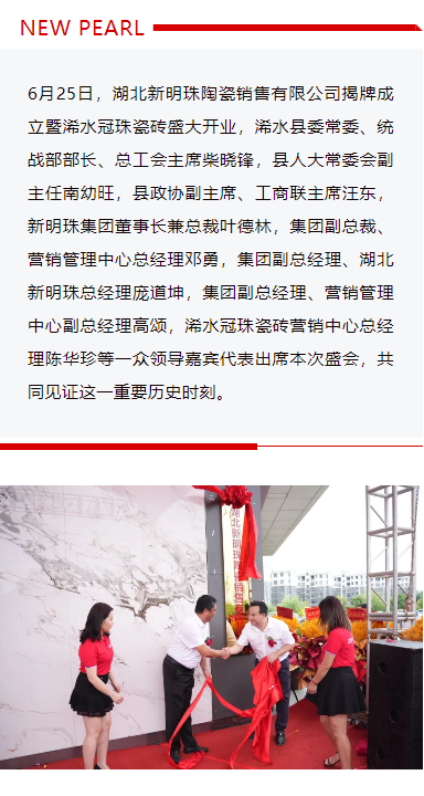 助力美好浠水建設!湖北新明珠陶瓷銷售有限公司揭牌成立暨浠水冠珠瓷磚店盛大開業